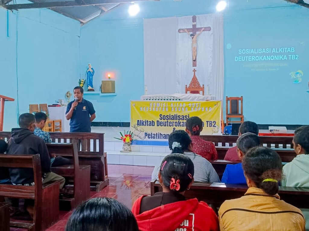 Siolais, 30 Agustus 2025 – Komisi Kitab Suci Keuskupan Agung Kupang (KAK) menggelar Sosialisasi BKSN 2025 di Kuasi Paroki Sta. Maria Reinha Rosari Siolais pada Sabtu-Minggu, 30–31 Agustus 2025. Kegiatan ini dihadiri sekitar 40 peserta yang berasal dari 12 KUB, pengurus Dewan Pastoral Kuasi (DPK), pengurus KUB, serta utusan dari empat kapela di wilayah kuasi paroki Siolais.