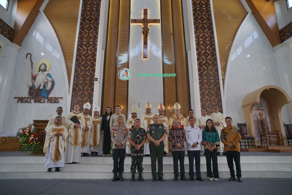 Kupang, 19/03/2025 – Sebuah peristiwa bersejarah kembali terjadi di Gereja Kristus Raja Katedral Kupang. Pada Rabu pagi yang cerah, pukul 09.00 WITA, Uskup Agung Kupang, Mgr. Hironimus Pakaenoni, secara resmi menerima Pallium dari Nuntius Apostolik untuk Indonesia, Mgr. Piero Pioppo. Pallium ini menjadi simbol persekutuan dengan Tahta Suci serta tanggung jawab pastoral yang dipercayakan kepadanya dalam menggembalakan umat di wilayah Provinsi Gerejawi Keuskupan Agung Kupang.